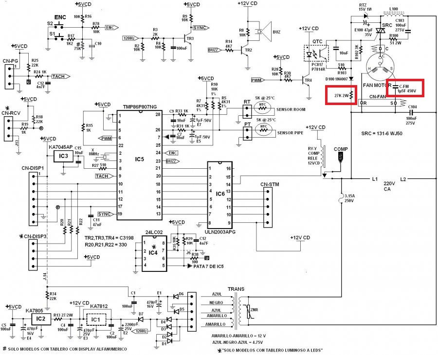 Na šemi u prilogu ti je zaokružen otpornik 27K i kondenzator 1.5uF 450V