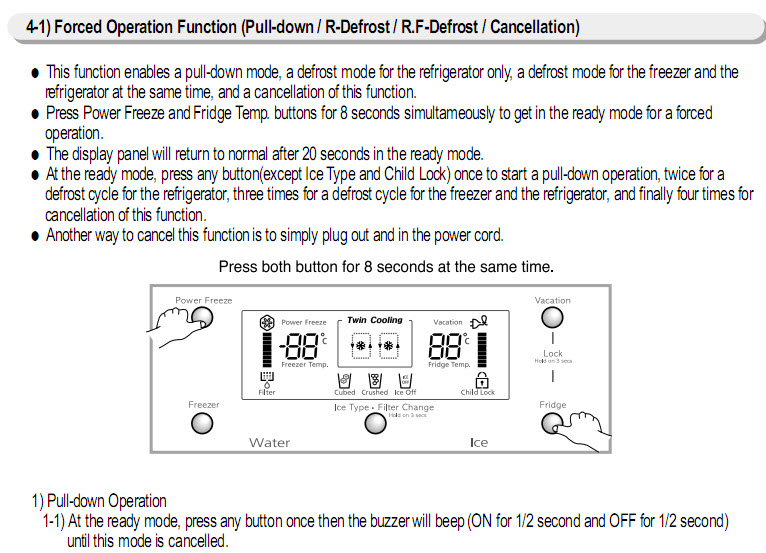 Potreban mi je service manual za samsung dvokrilni frizider model RS 23FCSM ili neki dokument kako ga restartovati na fabricki default.