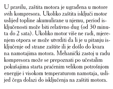 Izmerio sam otpor na glavnom i na pom. namotaju i to je ok. definitivno je mehanicki problem tj. kompresor se koci pa samim tim i motor ne moze da krene povuce vise strruje pregreje zastitu i ona izbaci i tako stalno, nema mu druge samo nov motor i resavam problem, sta mislite sa ovom mojom konstatacijom?