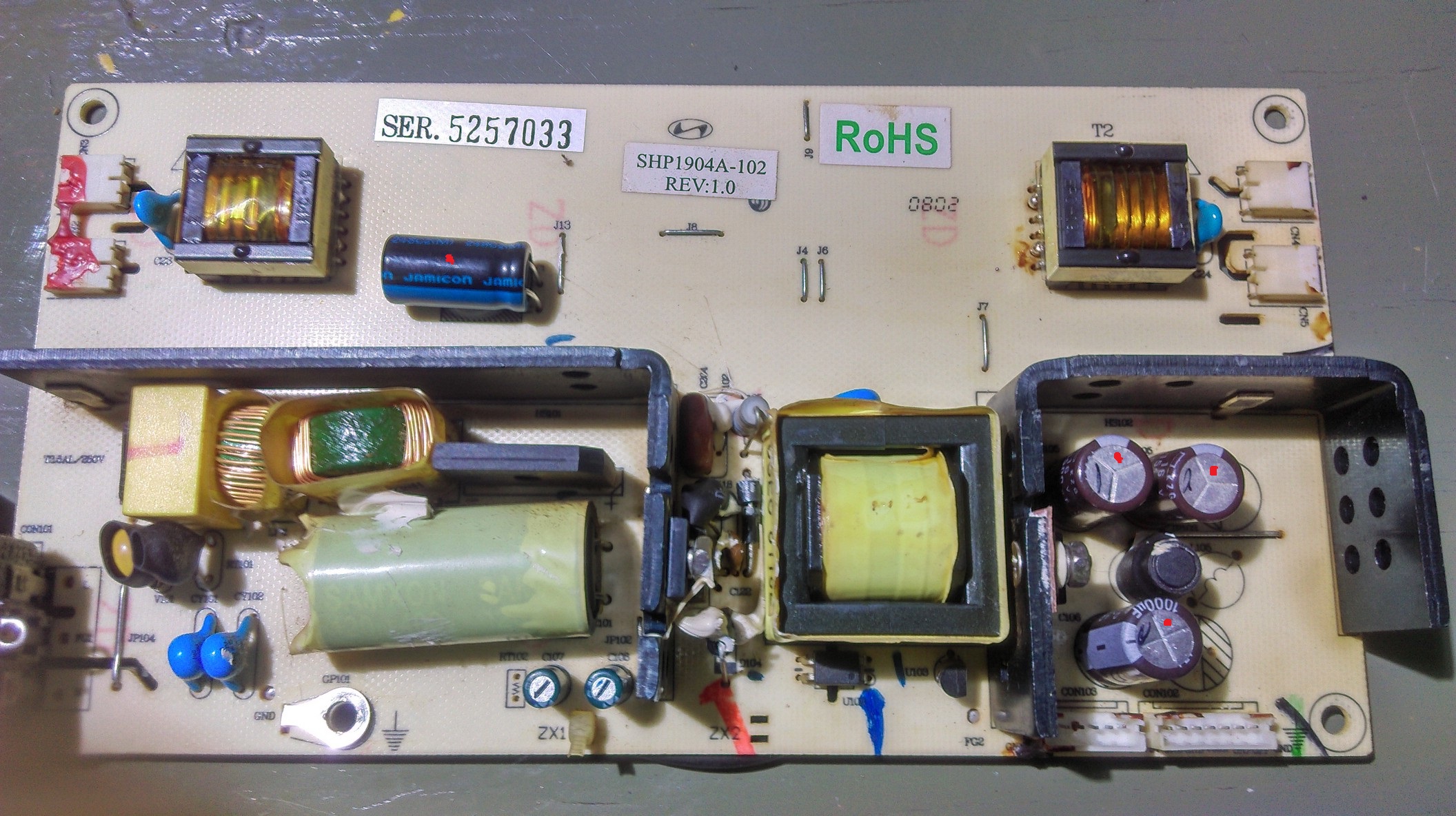 Naponska ploča je imala 3 napuhana kondenzatora koja sam uredno izmjenio sa odgovarajučima, ali i dalje nema osvijetljena i čuje se lagano zujanje sa ploče.