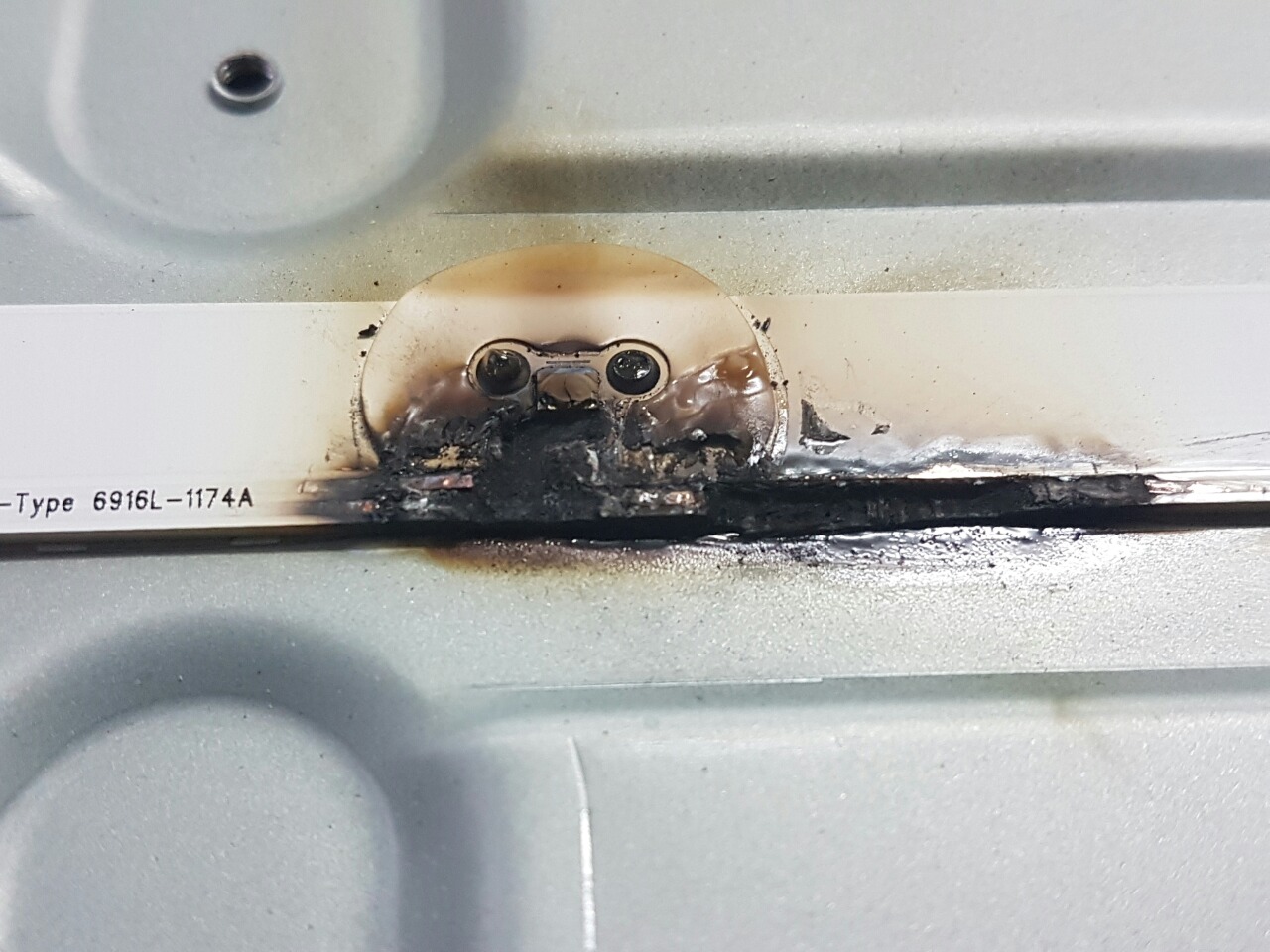 OPIS KVARA i PREDUZETE RADNJE: Za 4-5 godina koliko se bavim popravkom televizora, popravio sam 100-tinak led televizora sa problemom pozadinskog osvetljenja. Dosad sam imao kvar da ili led bude u spoju ili u prekidu. Ovo je tv iz kockarnice koji radi 24 casa neprekidno. Posto sam par puta menjao segmente led osvetljenja gazda je odlucio da na svoju ruku poruci sa aliekspresa komplet osvetljenje u nadi da ce trajati duze. Trajao je citavih 2 meseca. A onda se zapalio.