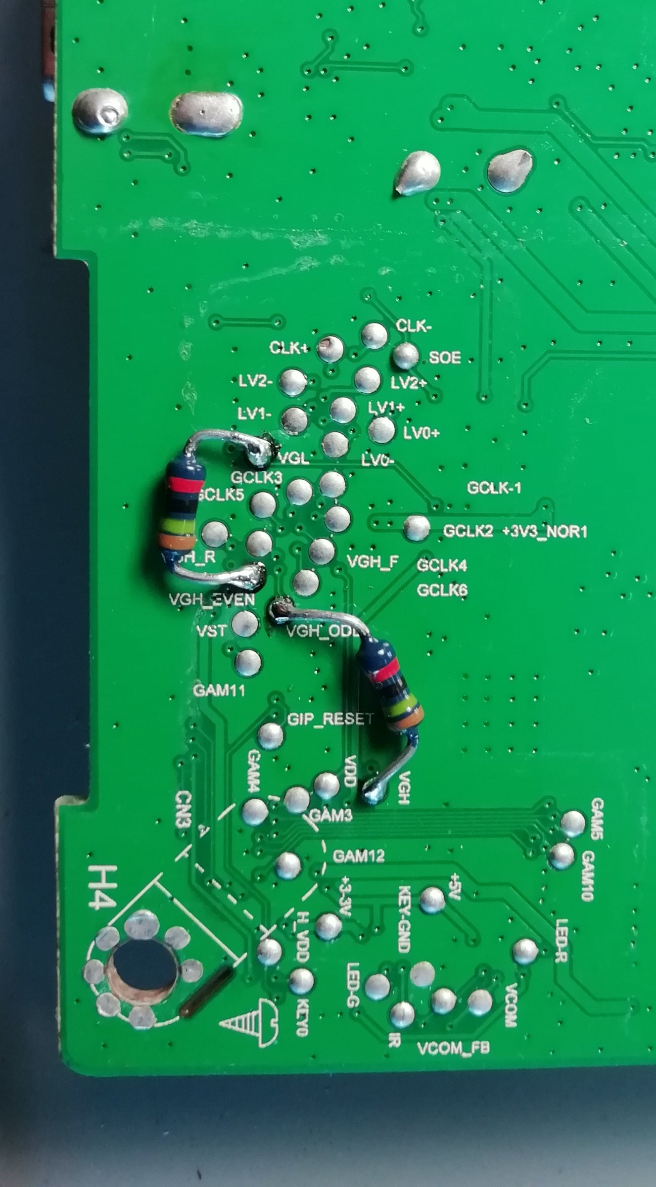 Pritom treba promatrati sliku na ekranu kako bi se vidjelo kod kojeg je naponskog nivoa slika dobra. Tada se radi odspajanje (cut off) te linije od lever shiftera i brika prema VGH ili VGL, već prema tome koja se naponska vrijednost pokazala pri dobroj slici (osobno, briku radim preko otpornika od 10-22ohm).