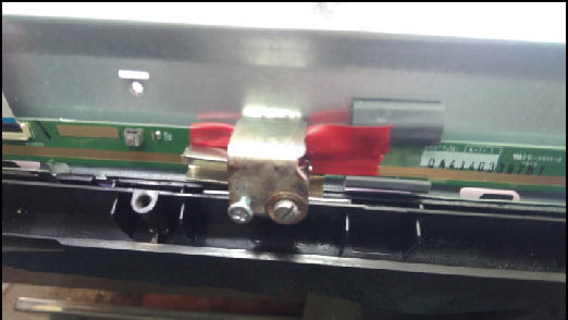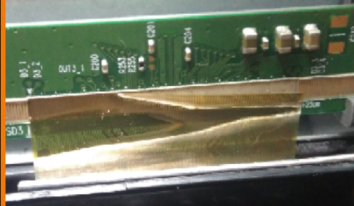 Resio sam problem na stari nacin,posto se flet kabal odlepio od plocice(do pola) prvo stavio izolir traku preko flet,pa stavio malu ravnu metalnu plocicu preko izolir trake ,zatim naso jednu plocicu metalnu iskrivljenu u P , narezao 2 malasrafa (m3) i tako stegnuo taj flet, tv perfektno radi ,nije profesionalno ali ipak perfektno radi, testiran 2 dana non stop,pozdrav poslacu i sliku