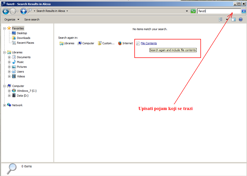 To je moguće odraditi direktno iz Windows-a. Prilikom pretrazivanja, to je opcija "Search content" ili "Pretraži sadržaj".