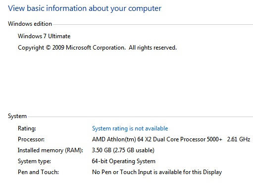 Upravo reinstaliram svoj PC. Ubacio sam 3.5Gb Ram memorije i instalirao Win7 Ultimate. Medjutim pisalo je 3.5gb memory (Usable 2.75gb) pa sam tako i ostavio jer sam mislio da je problem u tome sto je instaliran 32bit operativni sistem. Medjutim evo sad ubacim Win7 Ultimate 64bit ali isto mi pise Memory 3.5gb (usage 2.75gb). A tako mi pise i u biosu. Pretrazio sam sve u biosu ali koliko vidim nemam opcije da bilo sta diram oko memorije. Memorije su testirane i 100% ispravne. Zna li neko u cemu je problem :?: Ploca je ASUS M2N-E SLI