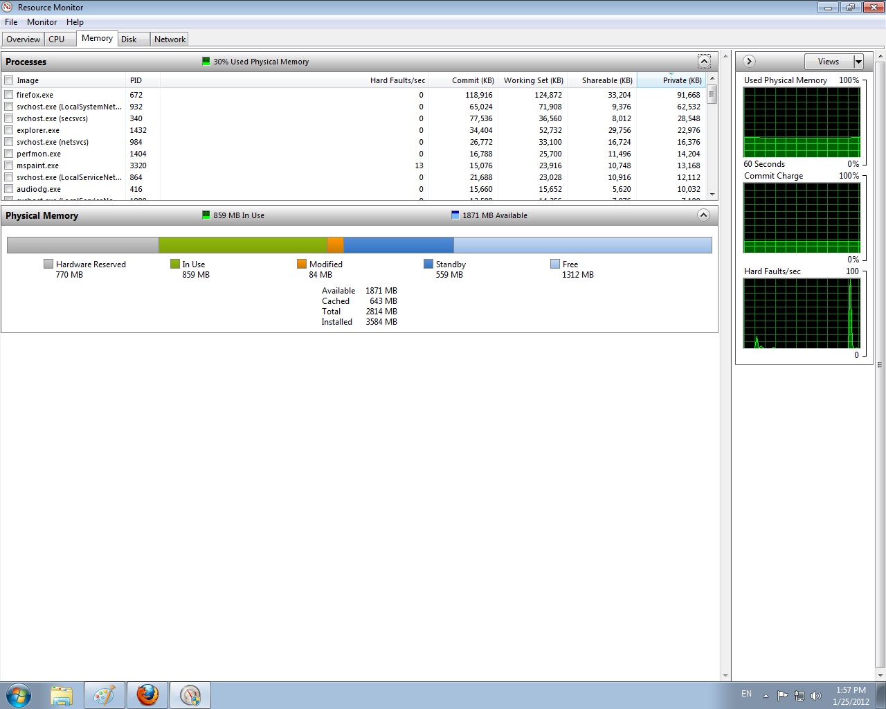 Kucaj u Search u Start Meni-to "Resource Monitor" imash tamo monitoring za sve shta radi OS, pa i za memoriju vidi shta ti uzima memorija.