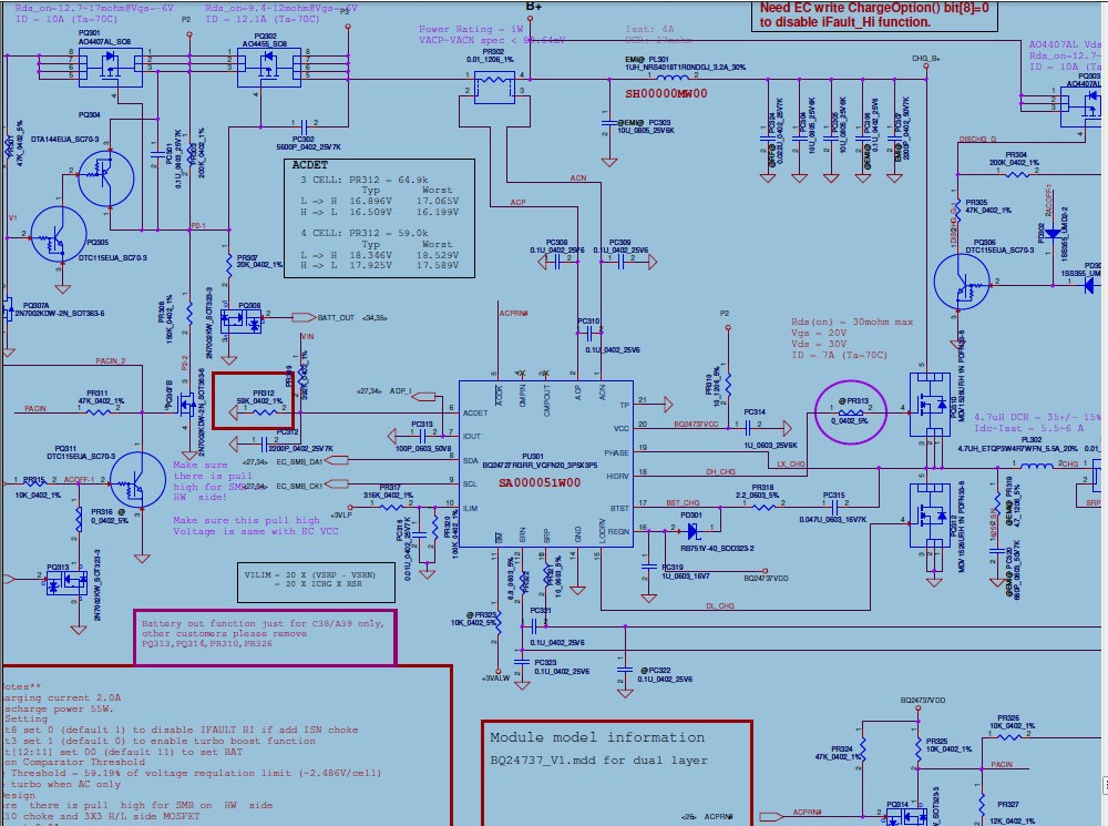 Nemam stalnu voltazu 3.3v i 5v prateci shemu ,vidim da sa B+ treba da dodje 3v na IN pu 401 ali meni je samo 1v bio mi je sumnjiv fet pq 303 ali je u redu ..Cak sam zamenuo IC za BQ2472 ali jednako .. .. Moze li malala pomoc? Ovde je shema ..