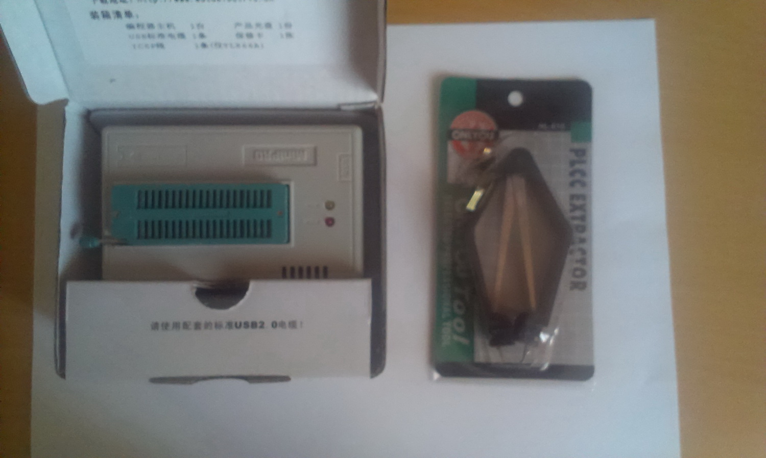 Programator, nov, u originalnoj kutiji, sa adapterima, PLCC extraktorom, usb kablom, cd-om.