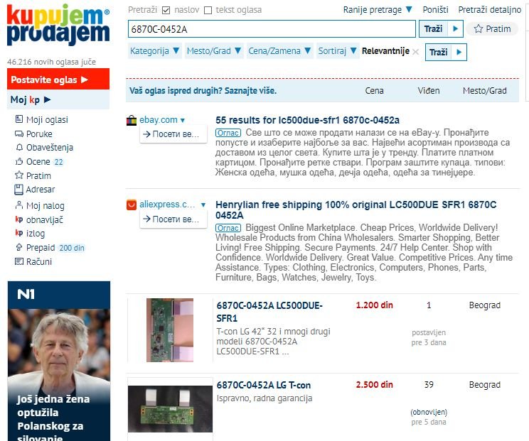 Otvorim KP, tamo se isto pojavljuju i linkovi ka eBay i Aliexpress.