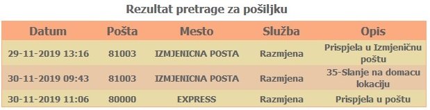 Mislim da je po sredi guzva. U CG posta ne strajkuje ali je zatrpana paketima. Treba to podijeliti.