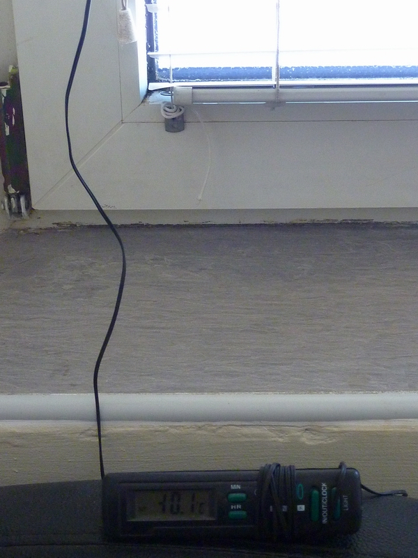 Trenutno je napolju (vreme 13h:57m) -12C , termometar malo "laze" jer je sonda zalepljena za prozor spolja, pri vrhu.
