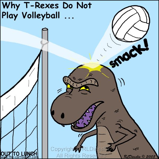 Igraju dva dinosaurusa T-rex-a odbojku.