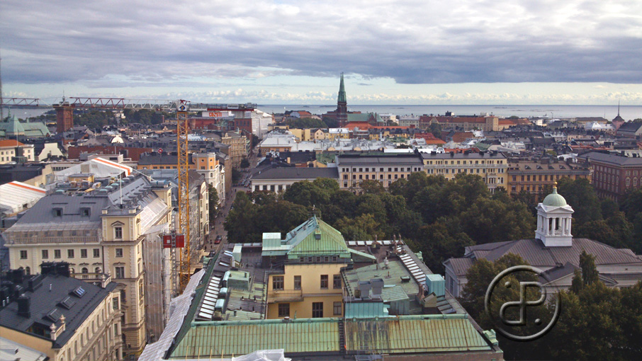 Helsinki danas, pogled sa visineKrovovi i fasade se renoviraju periodično, trebalo-ne trebalo. Stoga su neki krovovi pokriveni ceradom.