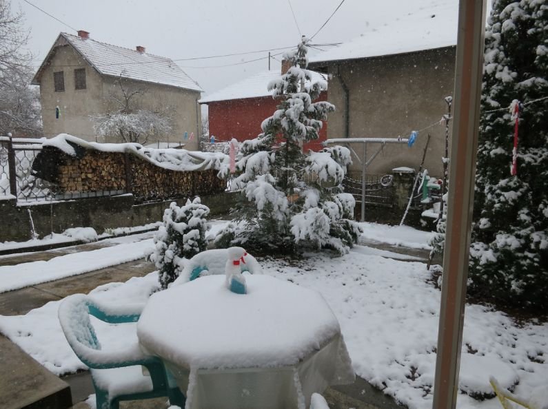 Pu, *e*em ti...samo je ovo belo *ovno falilo. A duva sa svih strana. Napadalo na stepenište, ispod stepeništa, pokvasilo mi drva koja su 3 godine sušena. Nije mnogo, ali ih je pokvasilo po površini iako sam bacio najlon preko. Kao da je kompresorom našpricano sa svih strana. A tek će da pada kažu. Kasnije i u ostalim delovima Srbije, do srede.