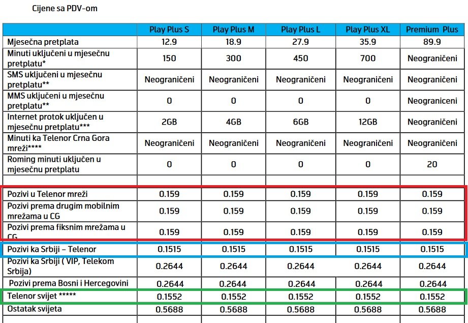 Ne znam kako je kod vaših provajdera ali kod Telenora MNE čiji sam korisnik cijene usluga izgledaju ovako: