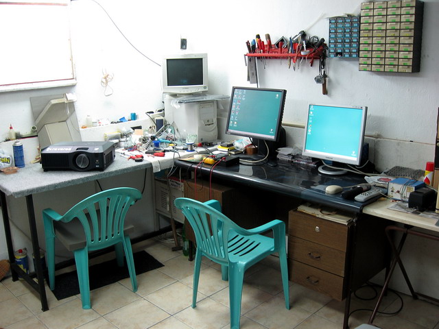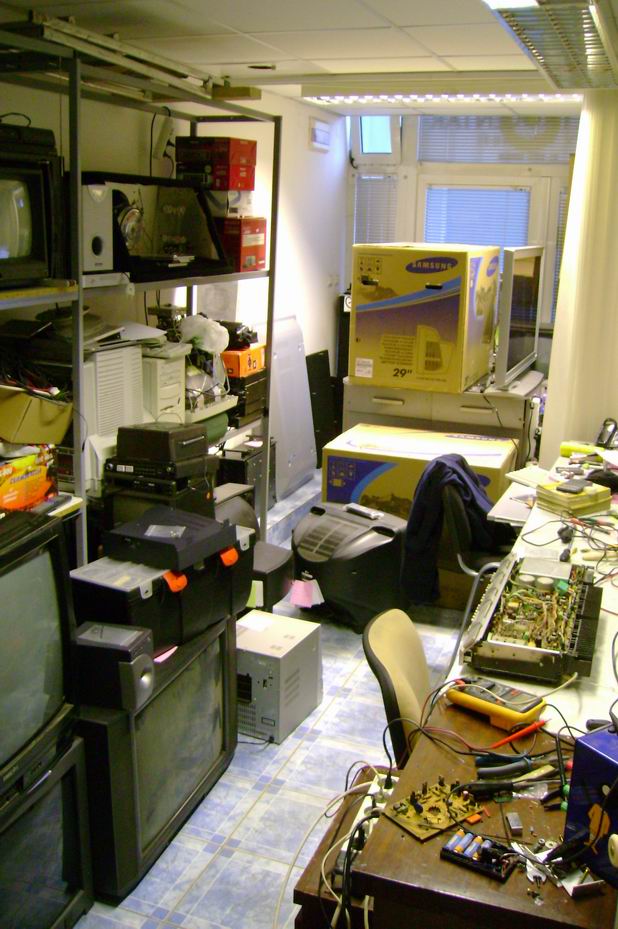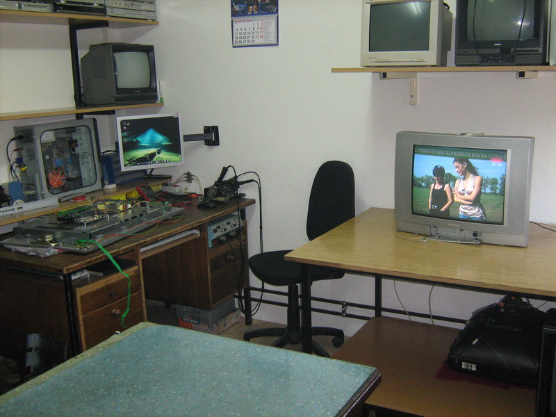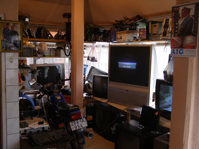 Evo kako izgleda moj brlog-bunjak gde provodim svoje najlepse dane. zanimljiva je slika jer samo sto je explodirao FBT na Prosonicu (PS.nemojte nikom da kazete) ajos je zanimljivije sto sam osetio da se vazduh jonizuje-bilo mi nesto sumnjivo pa sam prineo njusku trafou da pomirisem a onda.....