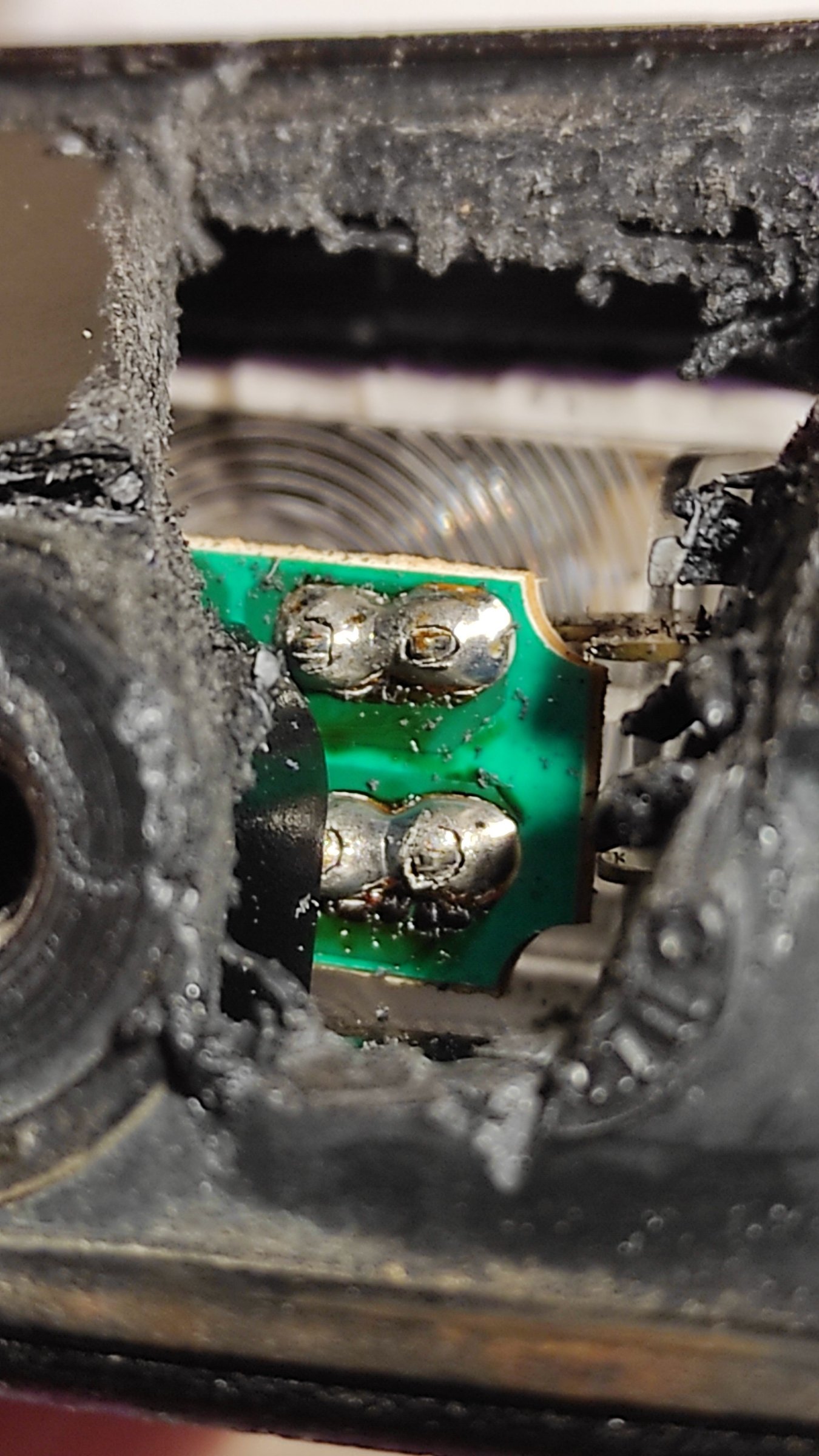 PREDUZETE RADNJE: na kuckanje nekad zasvetli punim sjajem. Ne može da se otvori a da se ne polomi jer je plastika krta . Na You Tube sam našao snimke gde su ga otvarali ali su lomili tu plastiku da bi pokazali gde je kvar što mi je bilo dovoljno da procenim u kom delu da otvorim rupu u plastici tačno na mestu gde je konektor zalemljen na štampanu pločicu a gde je zapravo prekid tj. hladni lemovi. Nakon lemljenja sam rupu zalio sa plastikom. Slike u prilogu.