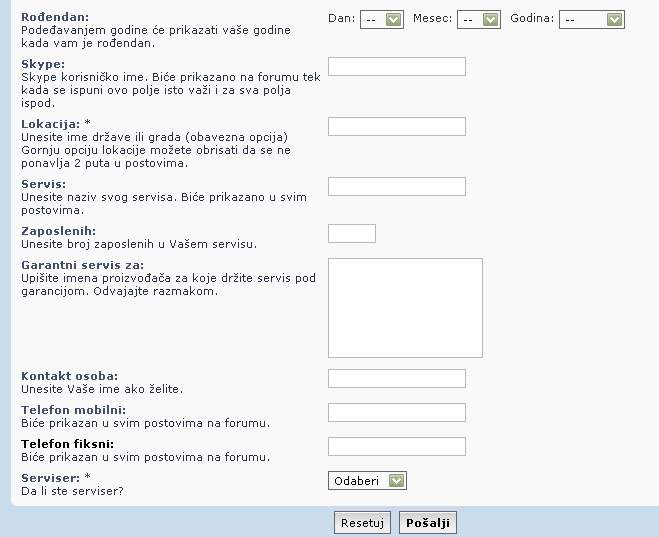 Dodata su Nova Proizvoljna Polja Profila. Možete napraviti izmene u svom profilu: >>Korisnički Kontrolni Panel >> Profil