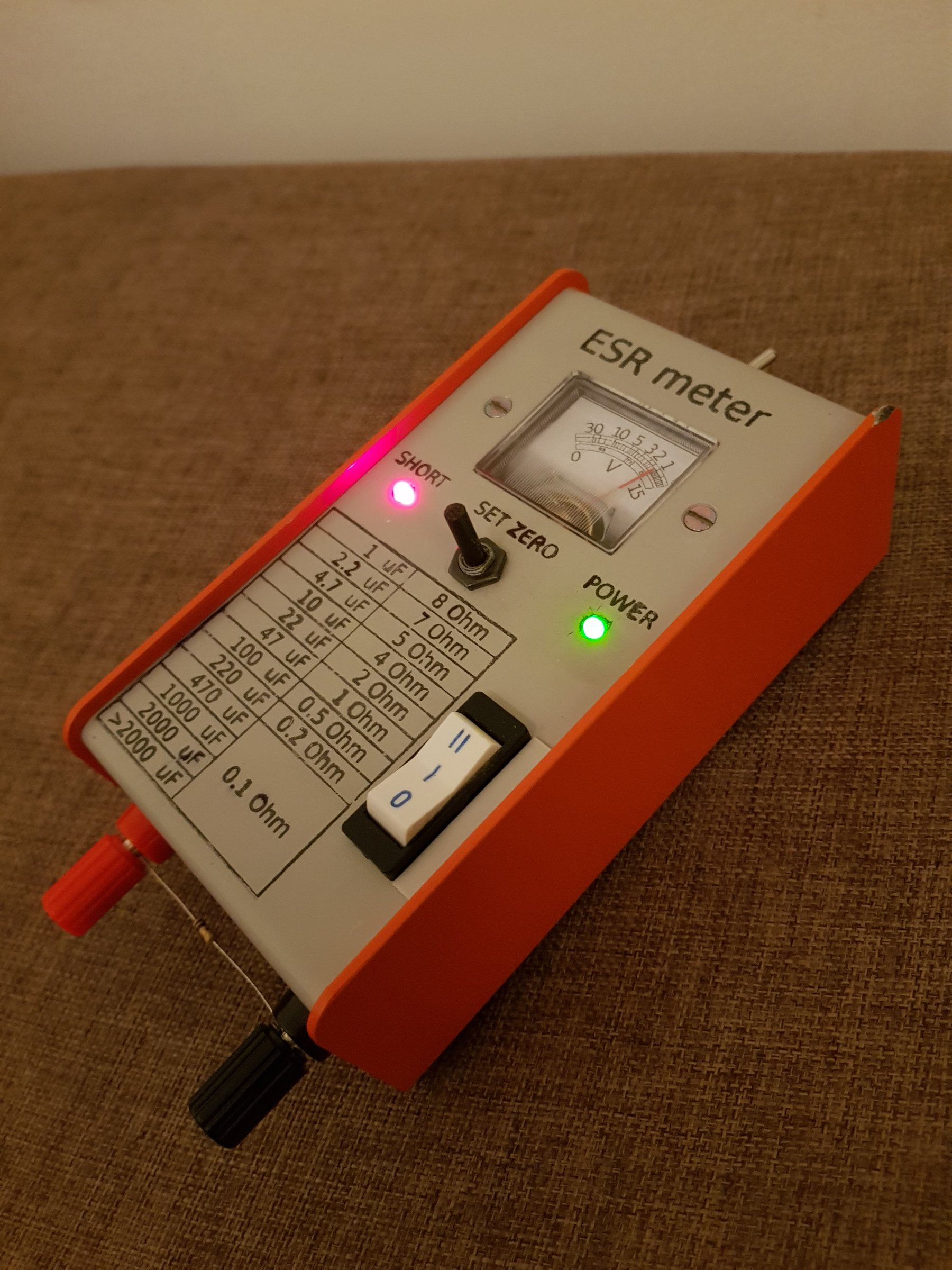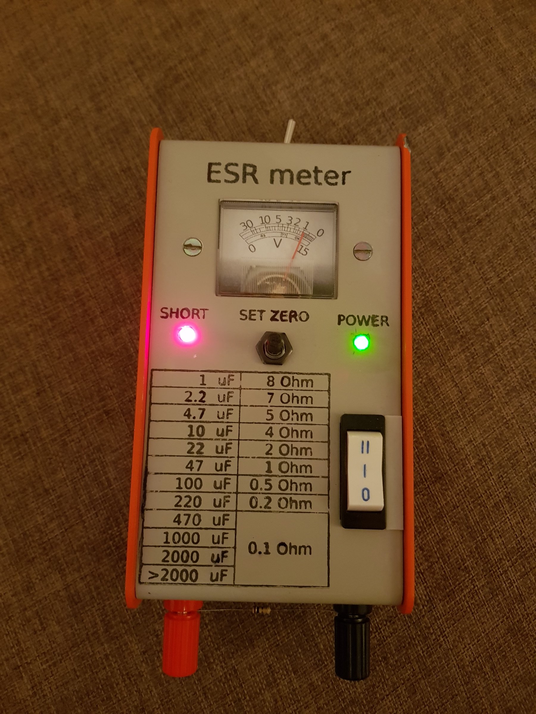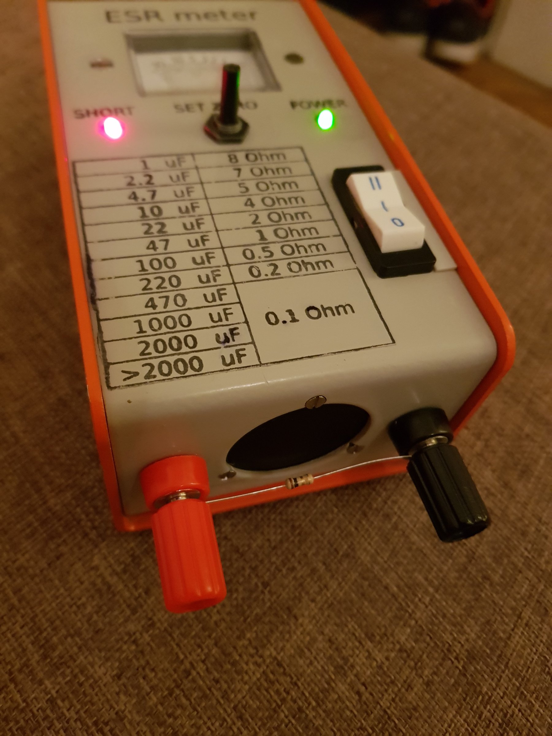 Prepravio sam ga u ESR metar sa americkom šemom. Dva moda esr i detekcija napona baterije za napajanje. Natpise sam radio metodom laser stampe na papiru i prenos acetonom. Ispalo je savršeno i jako dobro radi.