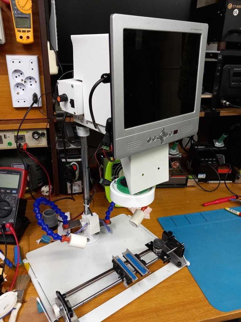 To je jako dobra postavka, naročito za servisere ali i za jutjubere.Kod mene je sada binokularni mikroskop mobilna kategorija ali se veoma lako i brzo postavlja na postolje umesto digitalnog ako zatreba (odvrne se jedan šraf pa se uradi zamena i ponovo zavrne šraf sve oko 30tak sekundi a koristi se istih 12V za sve).