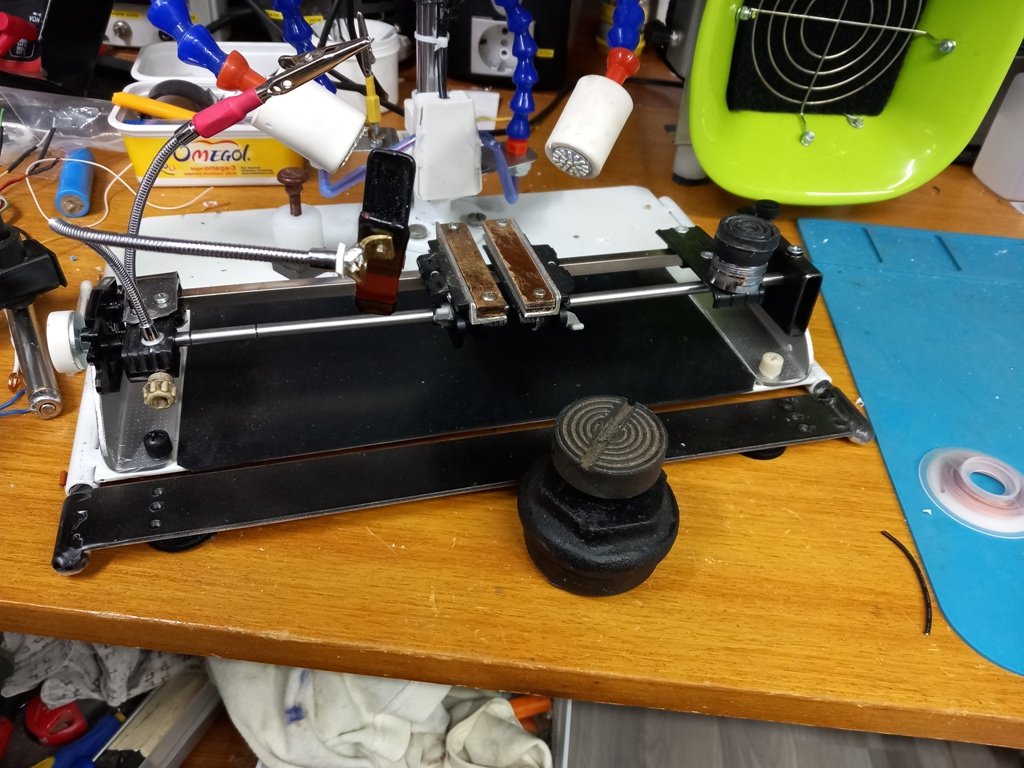 Da bi se lakše lemile tanke žice na nosaču pločica sam dodao dve savitljive cevi kao treća ruka sa promenljivim dodacima koji drže tanke žice jednu ili više komada u položaju za lemljenje te su ruke slobodne.Ispred je oslonac za ruku.