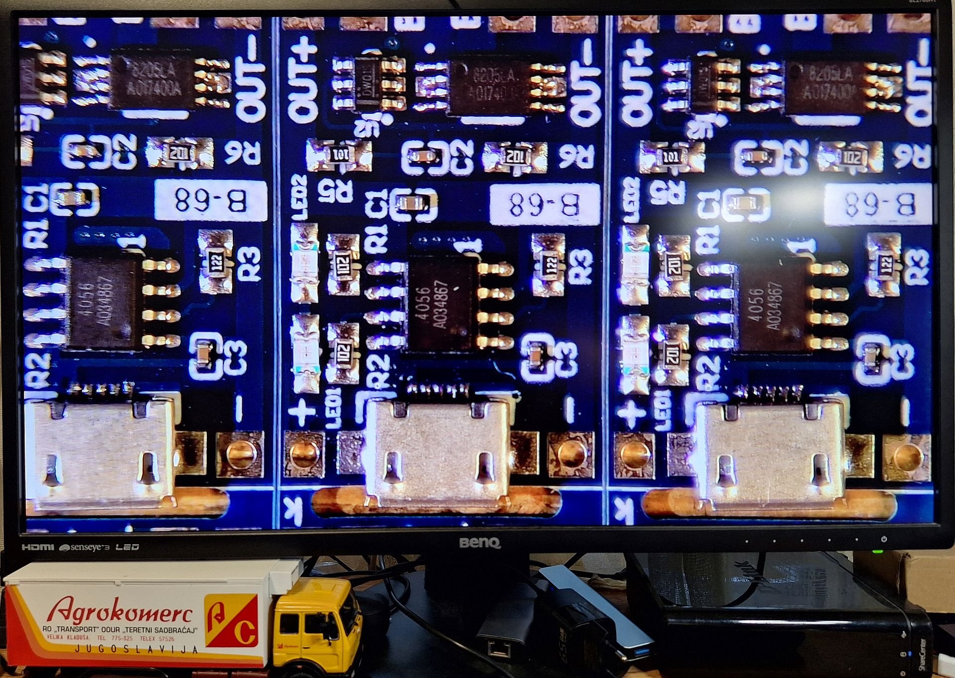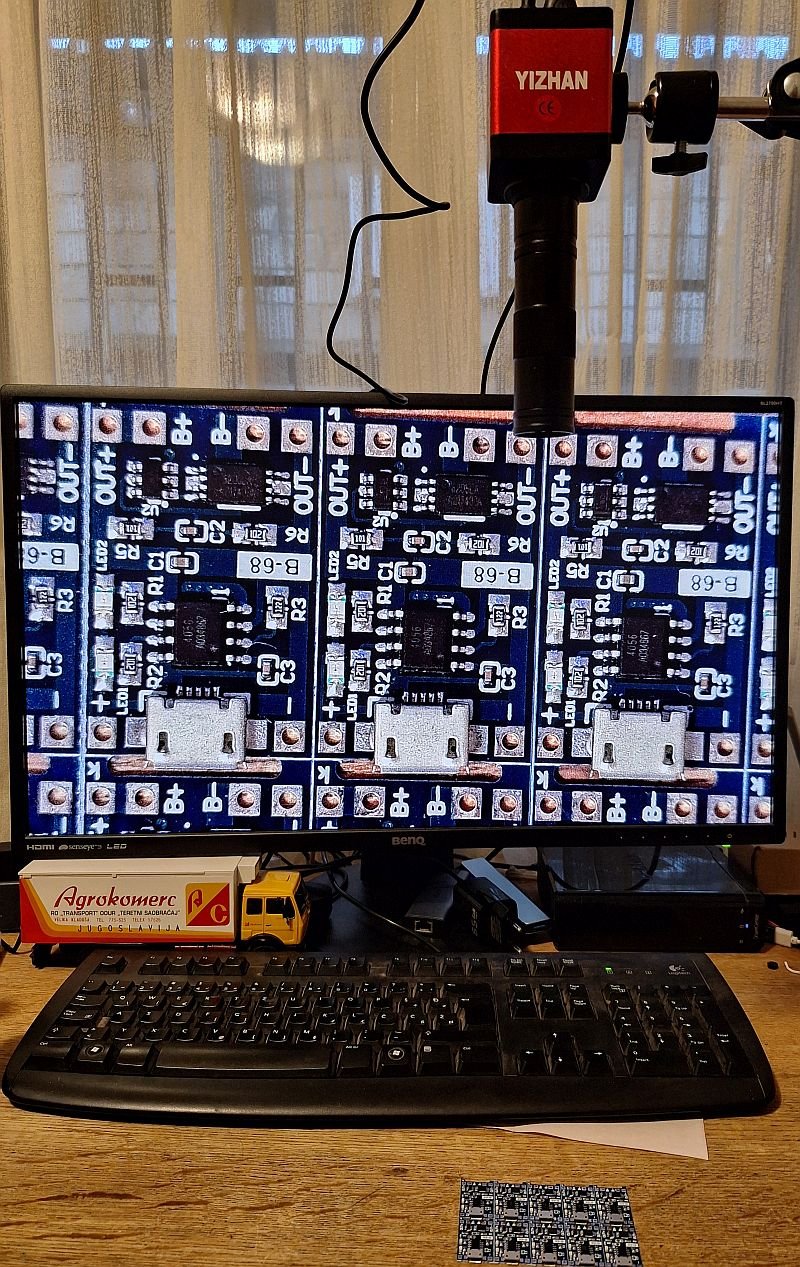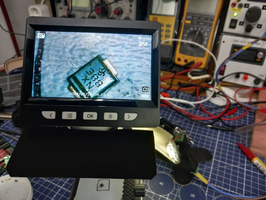 Prošle godine sam povoljno kupio na aliekspresu mikroskop sa malim monitorom da mi posluži umesto lupe da mogu očitati SMD komponente koje kupujem u kitovima (polako se popunjavaju fioke) pa su kinezi ispisivali oznake flomasterom pa se poneke teško tumače pa tu on dobro dođe.Kako je kod mene prostor visine dva metra i dobro osvetljen i da bi smanjio taj uticaj stavio sam senilo ispred monitora tako da sam to svetlo anulirao (kod druga dva tu funkciju između ostalog odrađuju multimetri).