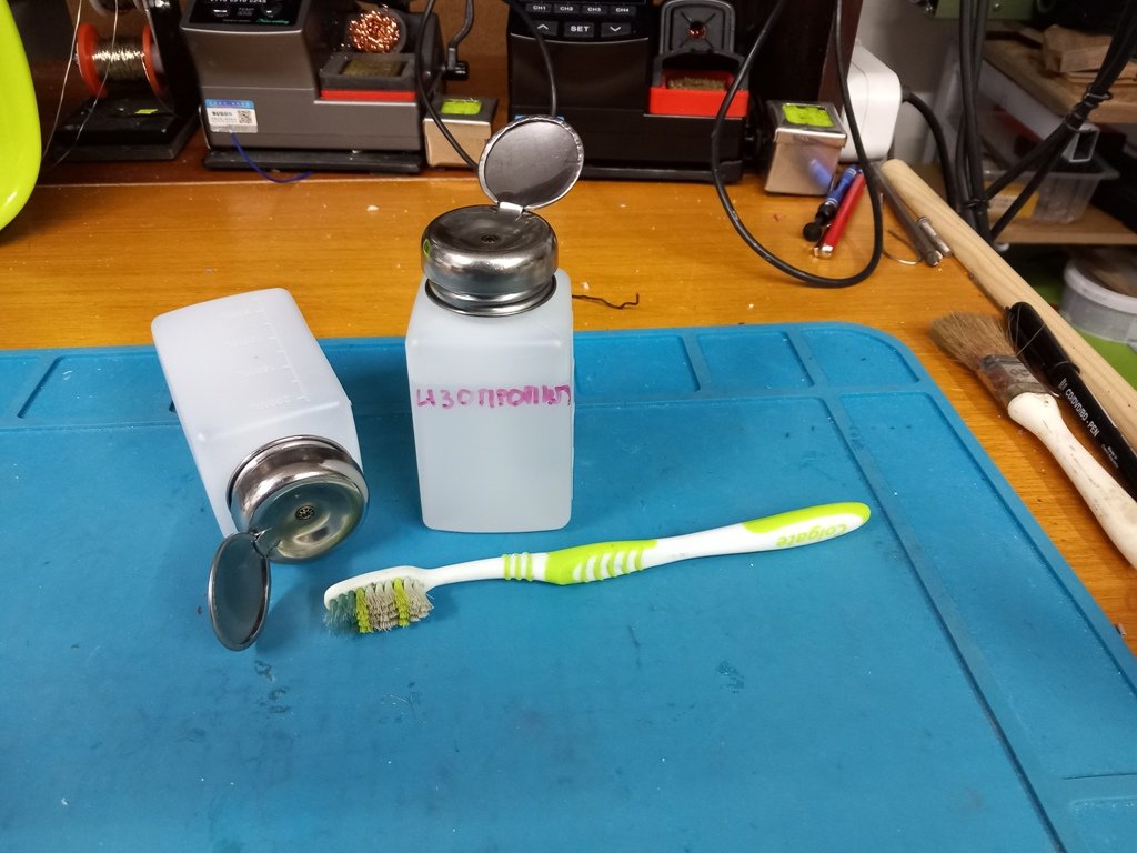 Videvši na jutjubu praktičnu primenu u elektronici kod čišćenja posle lemljenja pomoću četkice za zube naručih dispenzer a tečnost.Stvarno dobra stvar jer štedi tečnost, primena je da se blago tapka četkicom u sredini gde je rupa jer je dosta meka opruga.