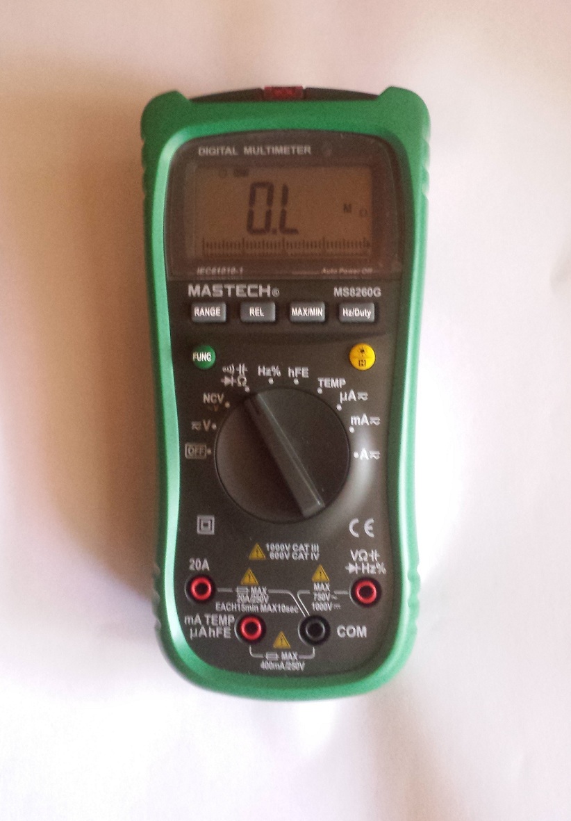 Posto sam uzeo pre jedno mesec dana instrument Mastech MS8260G i dobro ga testirao mogu da kazem da je sasvim OK za neki servis i preporucujem ga svima ko hoce da kupi instrument srednje klase, da bude dobar a da ne kosta puno. Kod nas u Srbiji kosta oko 65 eura a ja sam ga platio u inostranstvu malo manje. Ono sto mi se najvise svidelo kod njega je to sto meri frekvenciju do 10 MHz sto je odlicno za tu cenu koju on kosta. Kapacitet meri do 4000uF a toliki kapacitet ne meri ni neki mnogo skuplji instrument. Preciznost je sasvim OK i ne gresi mnogo. Kada meri otpornost ili na primer napon onda jako brzo izmeri i odmah prikaze tacnu vrednost na displeju ali se ceka od 4 do 7 sekundi za merenje kapaciteta preko 1000uF. Moze da se ukljuci i svetlo na displeju ali se dosta brzo iskljuci pa mi to nekada smeta ali mu to ipak nije neka velika mana. Ovaj instrument ima tragac faze (odlicna stvar za elektricare) gore iznad displeja i tu se nalazi senzor, buzzer i crvena lampica i kada se instrument prebaci u opseg NCV moze da nadje u zidu gde ima struje kada se senzor priblizi zidu na oko 20mm razdaljine i blize. Sam kvalitet mernih kablova (pipalica) i nije neki ali za taj novac se ne moze nesto ni ocekivati. Ko zeli da kupi instrument srednje klase koji meri skoro sve za neki novac do 100 eura svima preporucujem Mastech MS8260G.