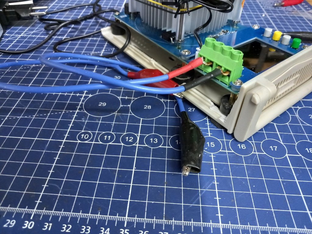 Testirao sam uređaj po pitanju tačnosti te sam dobijenim rezultatom zadovoljan (ulaskom u podešavanja se mogu kalibrisati i napon i struja) te mi je ostalo da malo skratim testne kablove.Na opterećenju od 4A pali se ventilator.