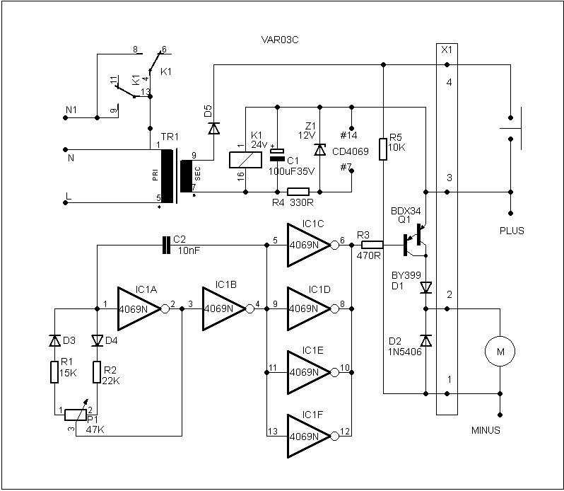 Varstroj je uradio seriju niskobudzetnih CO2 aparata za siru upotrebu (hobi majstore) i u svojoj konstrukciji elektronski modul za pogon zice modifikovao u nekoliko verzija. Pre neki dan mi je dosla jedna od njihovih verzija sa oznakom VAR03C. Radi se o malom elektronskom modulu, koji je u stvari klasican PWM generator koji formira impulse uz pomoc 2 NE kapije kola CD4069 dok ostalih 4 kapija koristi kao bafer za pobudu PNP darlington tranzistora.