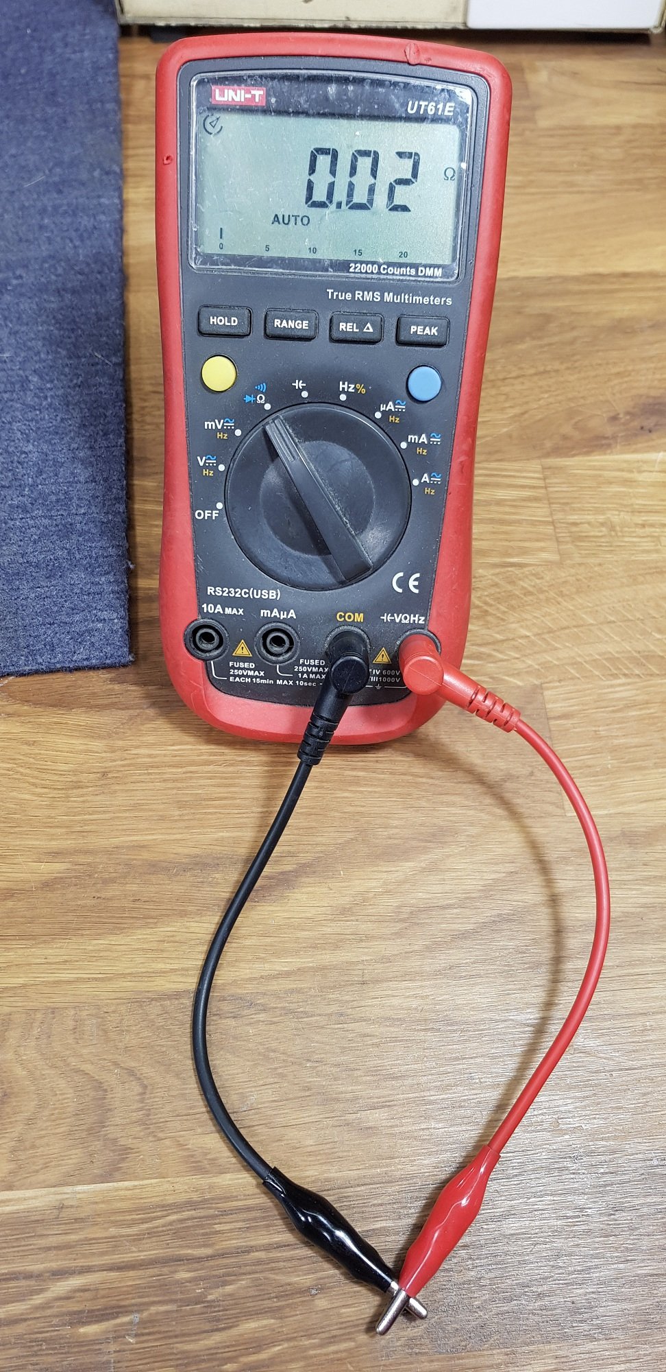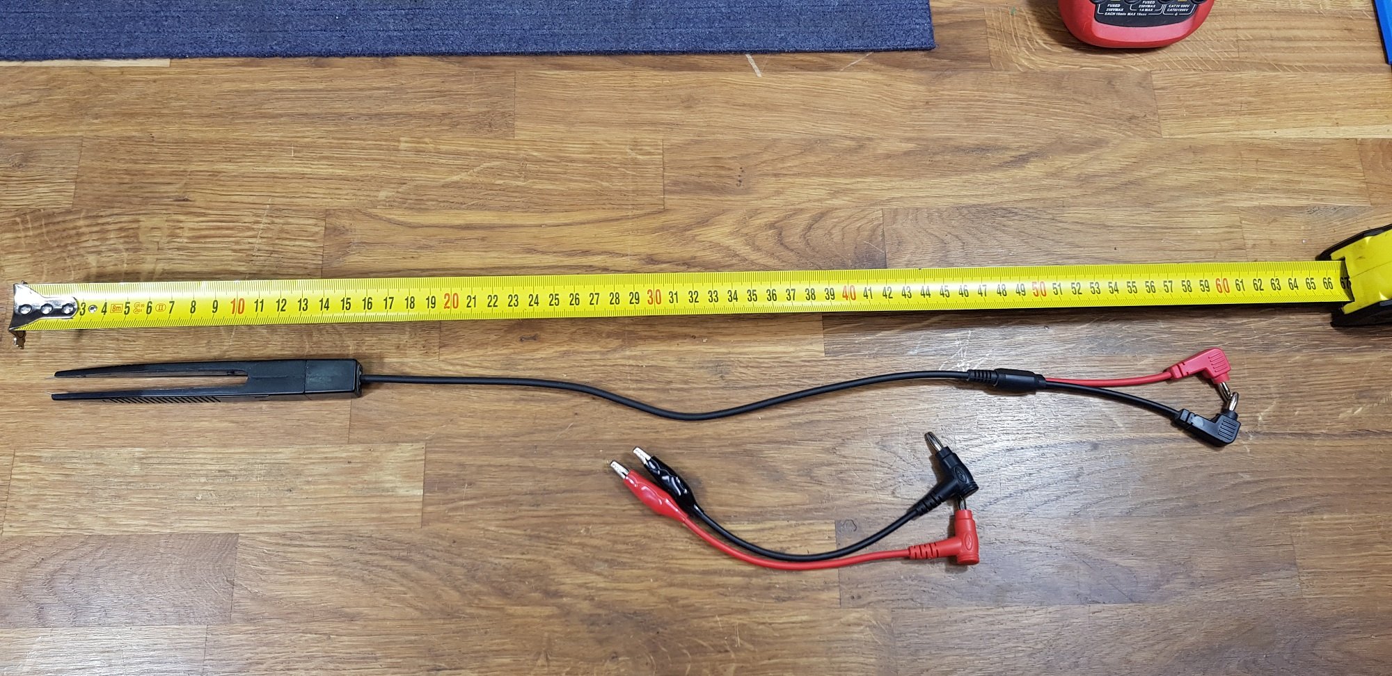 Kontaktna pinceta je duljine oko 60-ak cm. Koristim je uz UT61E ali ne i uz MESR-100 jer se zbog prevelika otpora (0.16 Ω) njome ne može odraditi kalibracija.