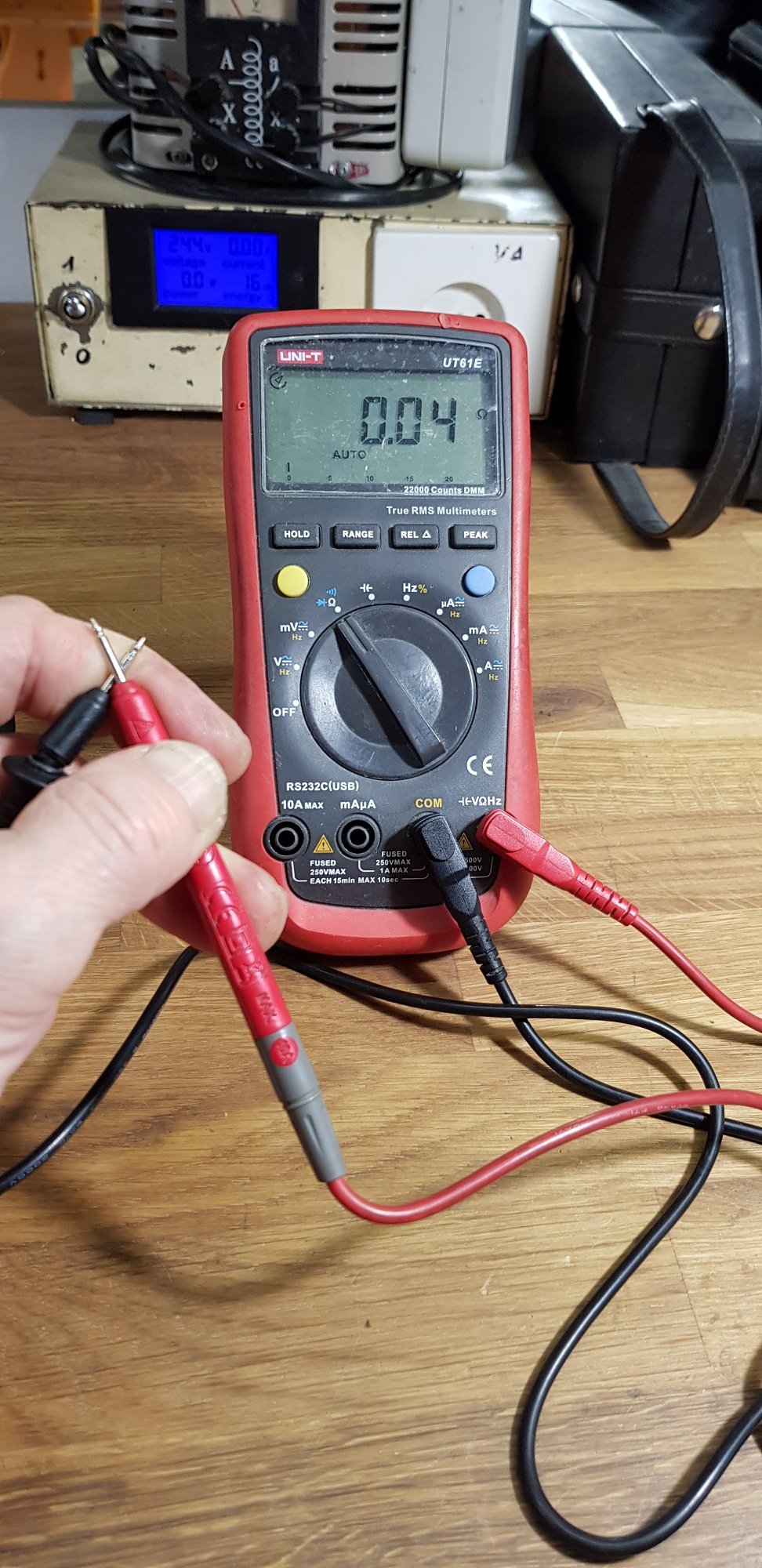 Neka spoji pipalice nakratko da vidiš koliki otpor pokazuje.
