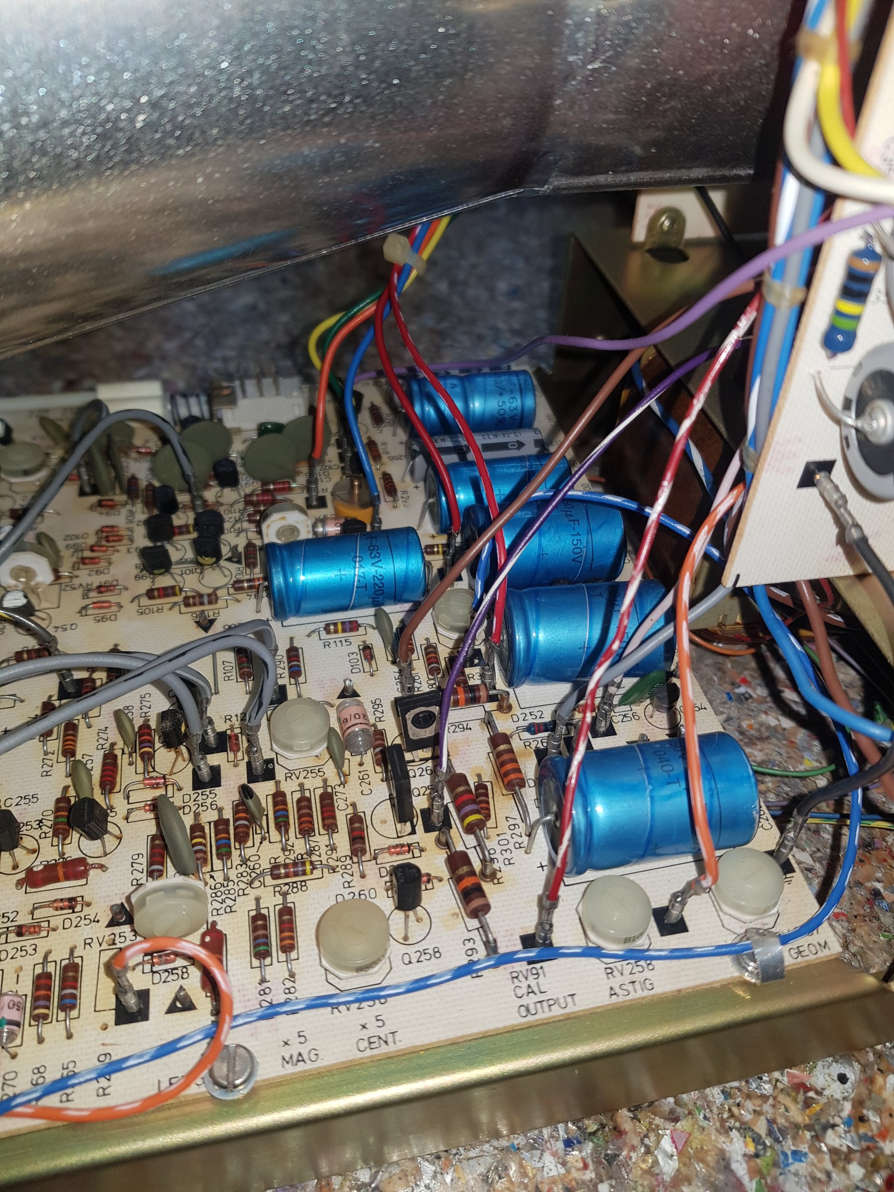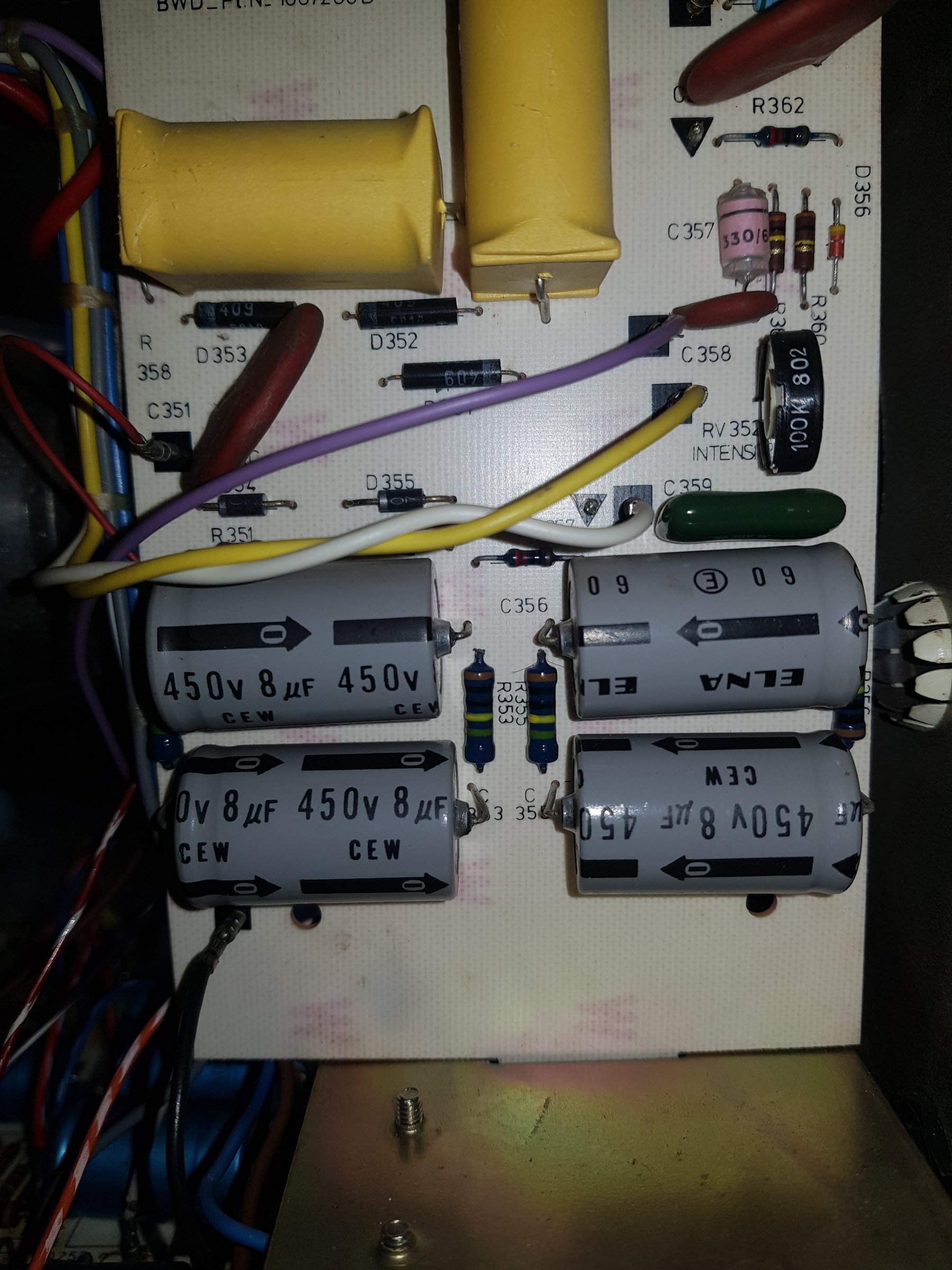 Ovaj uredjaj nije do sad popravljan i u njemu se nalaze vecinom horizontalni elektrolitski kondenzatori. Merio sam ih kineskim testerom i svi su ispravni sa dobrim Esr.