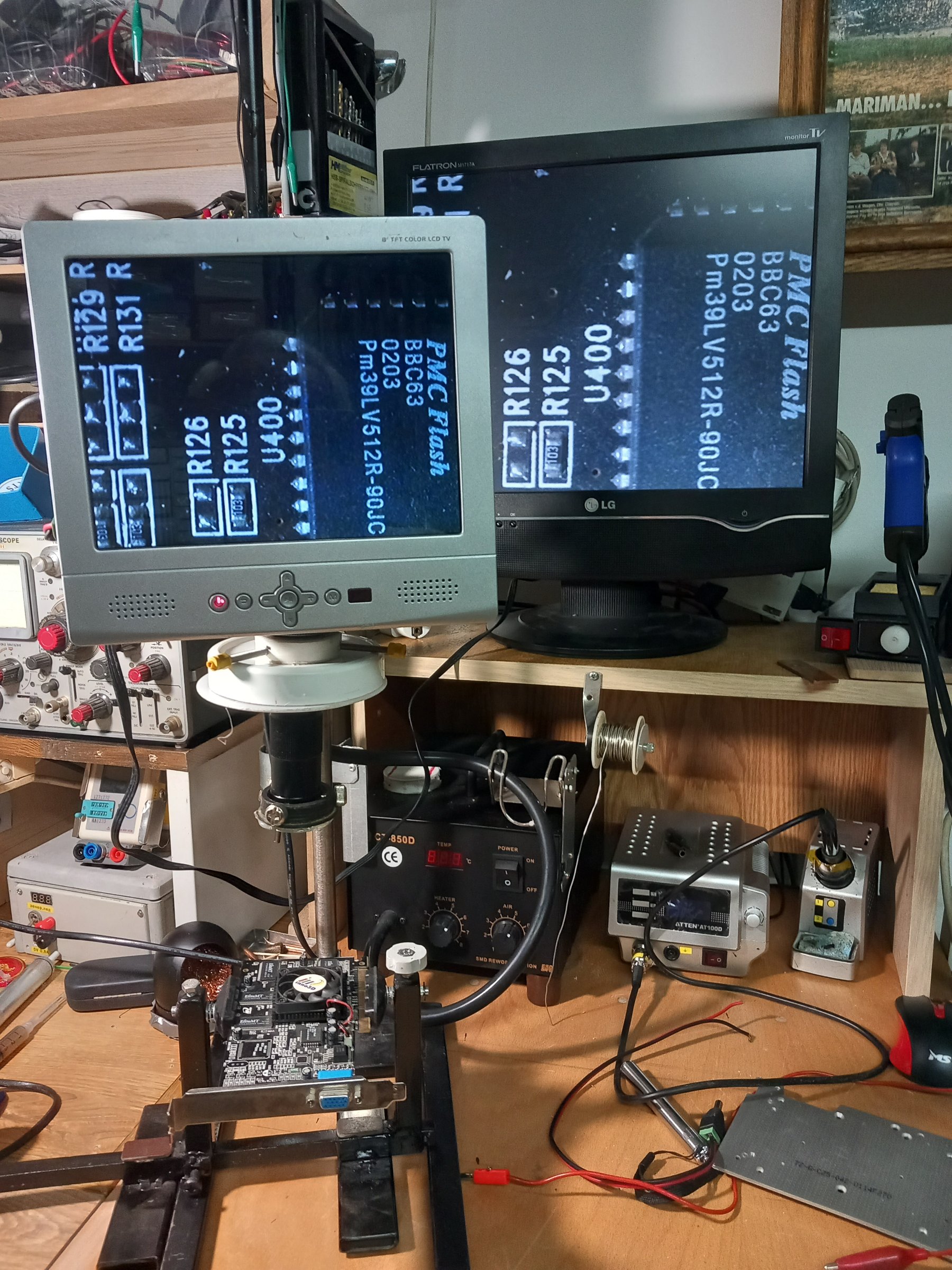 Pri lemljenju koristim analogni jer je kod njega kašnjenje zanemarljivo u odnosu na digitalni mikroskop koji je za inspekcijske poslove.Iako je kod analogne u pitanju digitalna kamera ali je konverzija u analogni signal gde je kašnjenje minimalno do skoro realnog vremena dok je u vga ili hdmi signal konverzija kompleksnija samim tim i kašnjenje primetno.S drugestrane odgovara mi 8 inčni monitor i to sadašnja postavka i sa njim sam imao prve radove na nožicama mikrokontrolera odnosno povezivanje oštećenih veza.Uskoro bi trebalo da mi stignu filteri za polarizaciju da otklonim odsjaj jer sad mikroskop radi sa osvetljenjem od ledovki u radionici pa je ponekad prisutna senka.