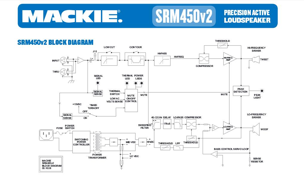 Radi se o aktivnoj zvucnoj kutiji Mackie SRM450 V2. Problem su primetili tako sto je kutija bila dosta "mutava" i posle par svirki se utisala horna toliko da se jedva cuje. Probao sam hornu i radi bez problema, premerio napone na izlaznom IC TDA7294 za hornu i naponi su dobri. Prelemio sumljive kontakte, probao da pojacam trimerom R62 ali nema nikakvih promena u jacini horne dok se trimerom R267 menja jacina bas zvucnika. Probao sam i direktno na izlazni IC da dovedem signal radi onda samo horna ali bas tiho bez promena. probao sam i sa skidanjem Q19 za mutiranje ali takodje nema promena.