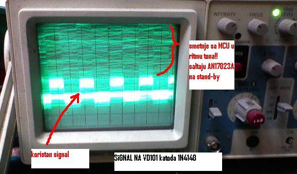 problem je sto se na signalu koji gura AN u stand-by, javlja interferenca sa realnog tona (za sada ne znam zasto ali je iz pravca MCU)!!! AN bude nesvesno gurnut u stand-by i ukljucen mute kao da prebacujes sa programa na program pa imas mute za trenutak ili kao kad si na rasteru