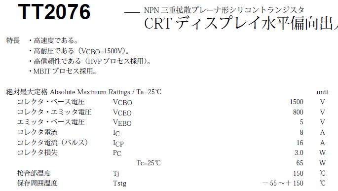 kondenzator koji je dodat je 1n5 izmedju C i E tranzistora. Napon je bio povecan, nesto preko 138V i verovatno je to jedan od razloga zasto je crkao TT2076. Stavljen je 2SC4288A (da ne rizikujemo), napon podesen na 130V i sada sve radi kako treba.