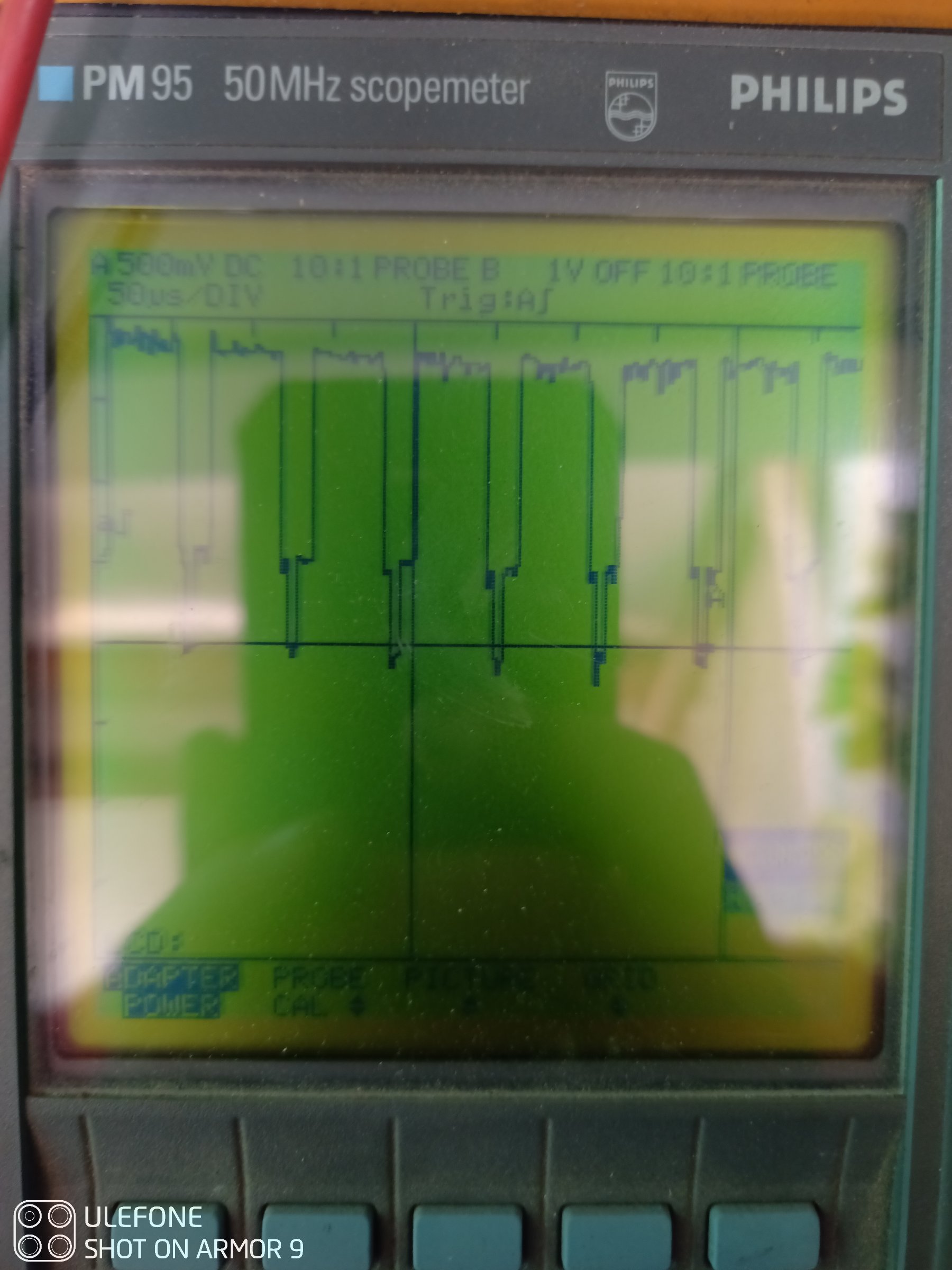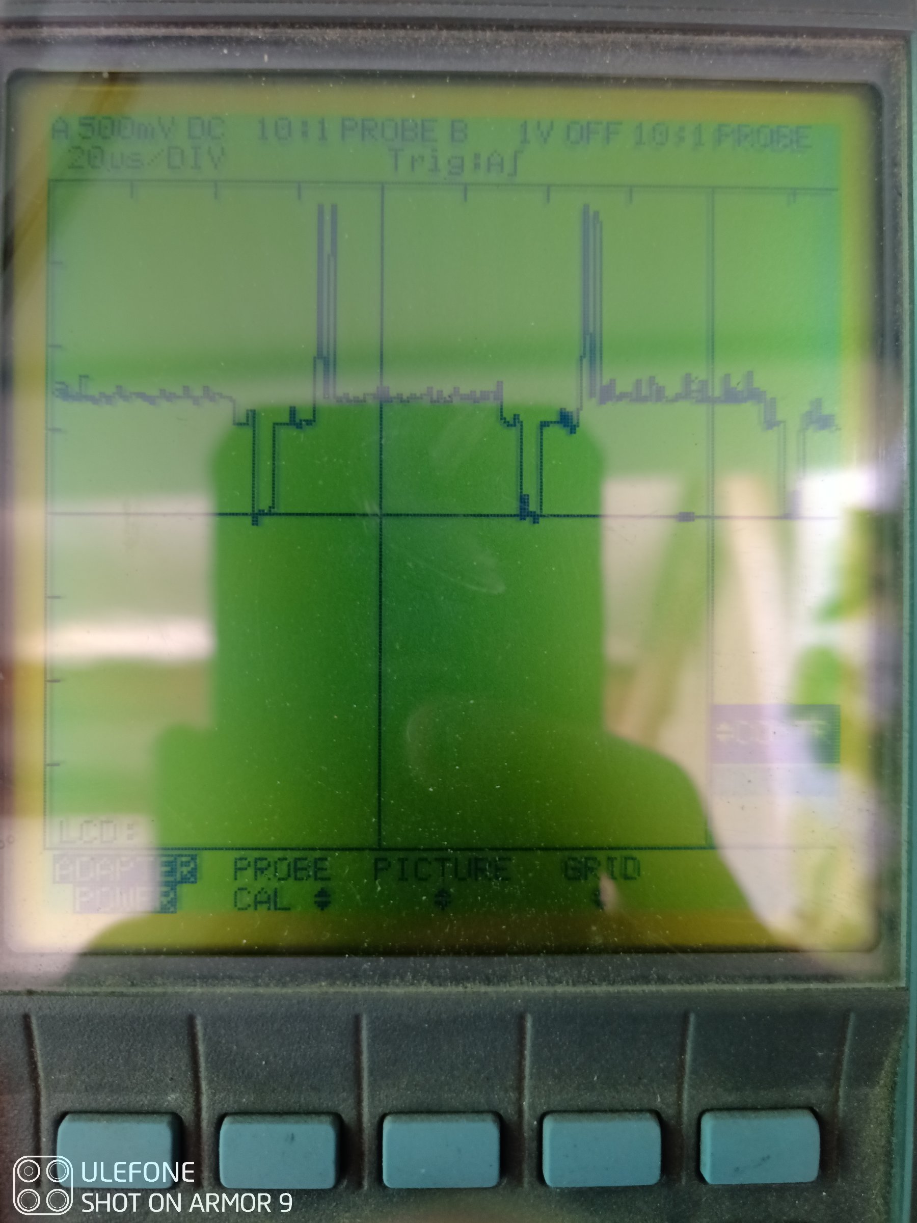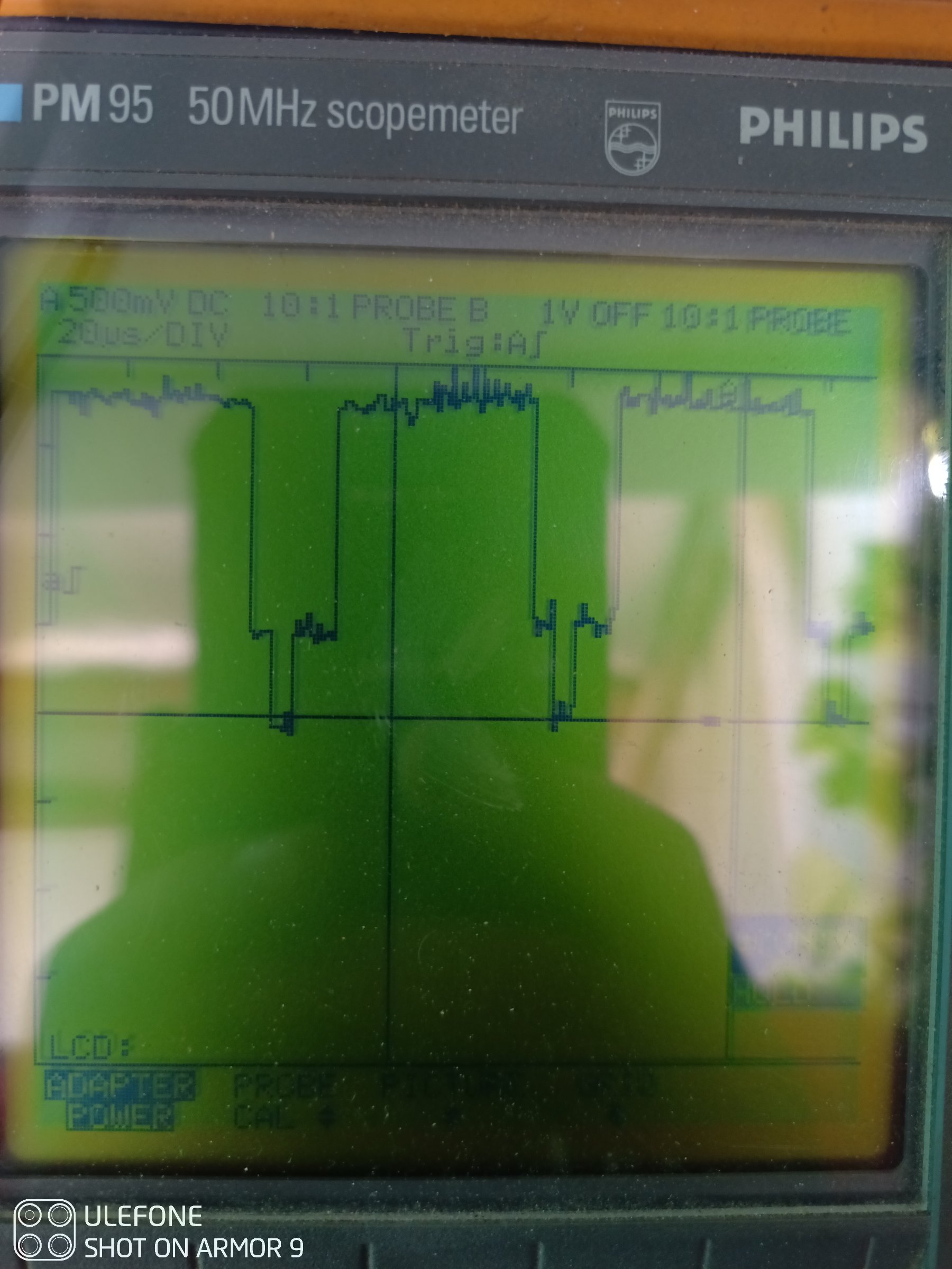 Na slici je klasičan video signal. Uvedi ovaj "žuti" signal na scart ili AV u TV i mora da bude slike. Na video signalu se ne vide vertikalni sinhro impulsi ali o tom potom. Možda ih i ima ali se sad ne vide. Uglavnom mora biti slike