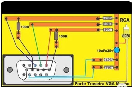 Ako nemaš, nego eksperimetišeš, predložio bih da to povežeš na TV preko scarta. RGB standardno a na pin 20 scarta dovedi sinhronizaciju (kod tebe su na "jednoj žici" oba sinhro impulsa)