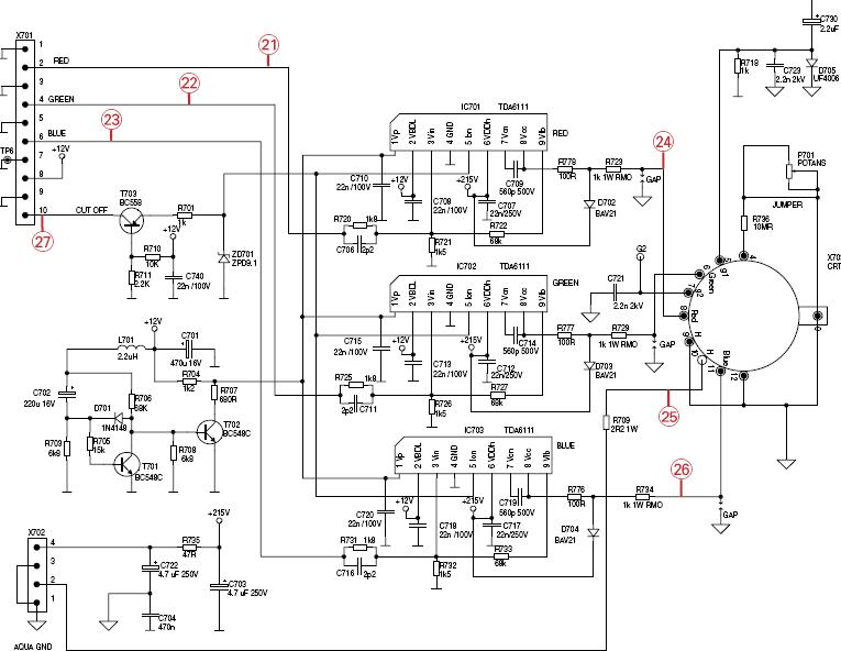 To je to PTC, sad je u redu samo neče ič bez zamjene TDA6111Q sliku malo vuče na plavu! Izlazni napon na TDA6111Q na tački 7, 8 i 9 mora bit više od 130V,sad je samo 114V!