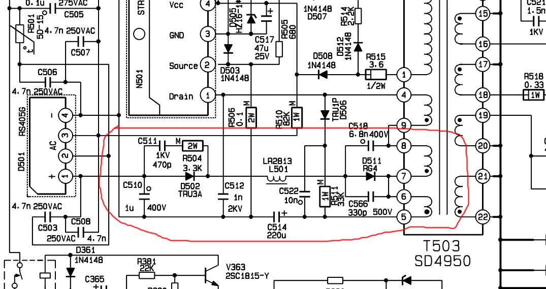 Da nisi mozda slucajno umjesto dioda D502 i D511 ugradio "obicne" 1N54xx?