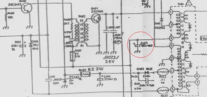 Pored elektrolita u +B istu gresku moze da pravi i elko u napajanju drajverskog tranzistora. Nalazi se do dravjerskog trafoa.