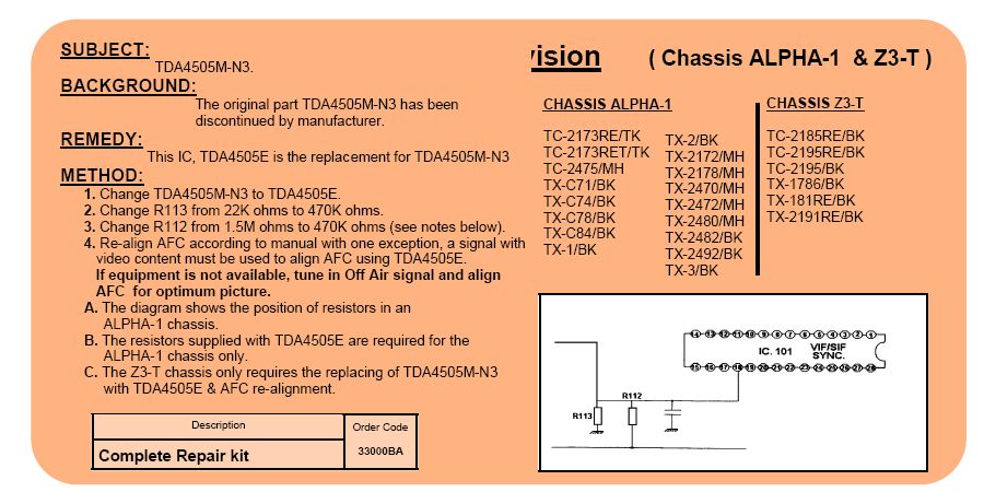 TV PANASONIC - Zamena TDA4505M sa TDA4505E (REŠENO)