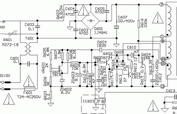 Hvala vam za sheme.Mnogo toga nije bas isto pa pokusavam da skontam nesto.Uglavnom mreza se sastoji od gretz-a BA10G(BR601); 4 tranzistora:C1815(Q601,Q603),B774(Q602),D1431(Q604),3 diode BYT52J(D603,604,605)...Sto se mreze tice jest slicna.Najgore mi je sto one pregorene komponente nemogu naci...