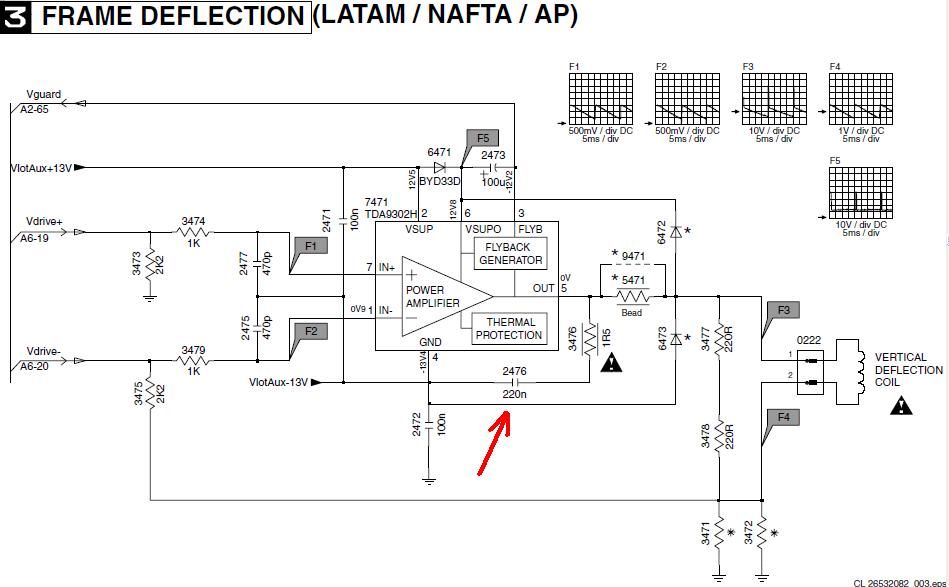 Ovdje se vidi prorjed,obicno neki otpor pravi ovakav problem.Vidi onaj paralelno sa otklonskim namotajem.