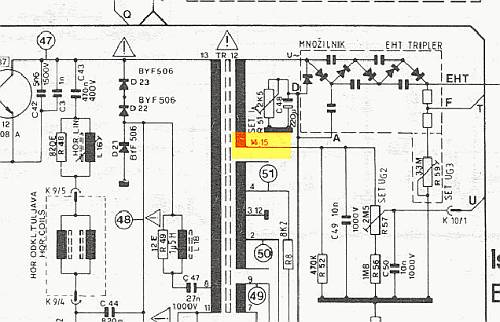 Kad je došlo do problema sa kontrastom, sam ovaj trimer R51 (2k5) promjenio najprije (pred 10 godina otišla je kaskada), ali ne znam kako se podešava. Ili se kontrast podešava "od oka" ili ima neke procedure? Može biti taj trimer, ako je slabo podešen, uzrok?obaveznopromeni trimer potenciometar koji se nalazi izmecu vn trafoa i kaskade
