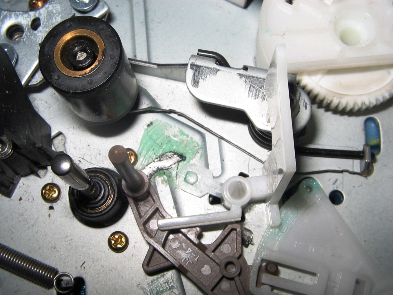 Ok, ukljucim kaze safe, ok videcu staje. Otvorim i ne mogu da verujem, nosac pinch rolera labav i nemam poima sta ga pribija iz osovinu kapstain motora.Sve sto mrda ima hod 2-3mm a ovo treba nesto da pribije na 2cm hoda, nista ne fali od pladtike donja osnova nosaca rollera ravna nista je ne zakacinje...