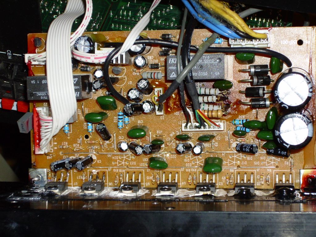 Proveri one velike 3A diode 1n5... ali i dalje mislim da su elektroliti.Probaj da menjas ne da meris.Slican problem sam imao bili su elektriliti u napajanju.Ne bi bilo lose da prvo zamenis ove velike mislim da su 4700mf ne vidi se na slici.