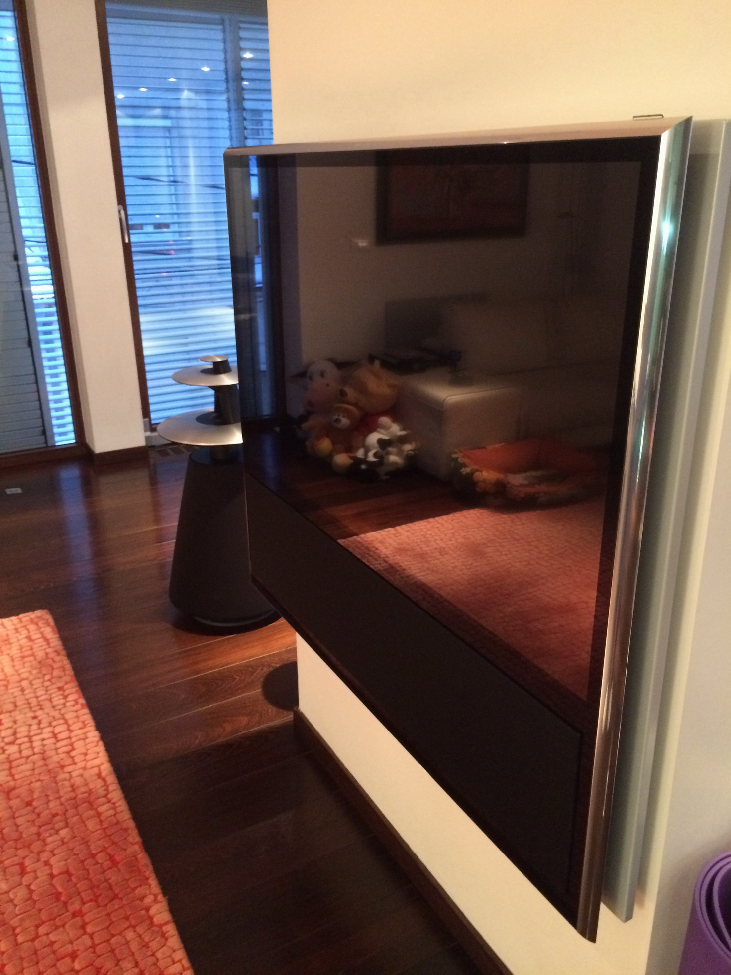 Pored TV-a su i 4 zvučnika, dva BeoLab 5 i pozadi dva BeoLab 3.