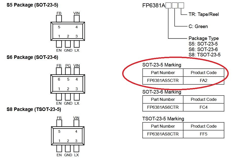 Po svemu sudeći ovdje se radi o step-down konverteru od 1.2A FP6381AS5CTR s smd oznakom FA2 u SOT23-5 kućištu.